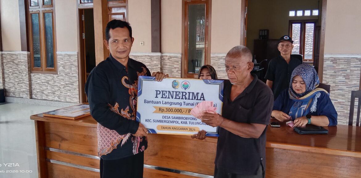 TULUNGAGUNG, potretnusantara.web.id – Pemerintah Desa Sambirobyong, Kecamatan Sumbergempol, Kabupaten Tulungagung, kembali merealisasikan Bantuan Langsung Tunai (BLT) yang bersumber dari Dana Desa tahun anggaran 2026. Penyaluran dilakukan di balai desa setempat dengan suasana tertib dan kondusif.