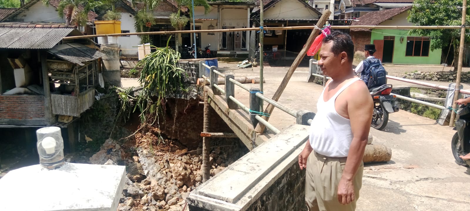 “Jembatan saat ini tidak bisa dilewati sama sekali. Warga terpaksa menggunakan jalur alternatif yang jaraknya cukup jauh, sehingga aktivitas sehari-hari menjadi terganggu,” ujar Agung.