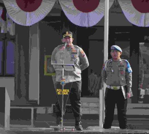 Apel dipimpin langsung Kapolres Blitar AKBP Arif Fazlurrahman, S.H., S.I.K., M.Si. yang bertindak sebagai inspektur upacara. Turut hadir Wakapolres Kompol Fadillah Langko Kasim Panara, S.IP., S.I.K., M.M., serta para Pejabat Utama (PJU) dan jajaran personel Polres Blitar.