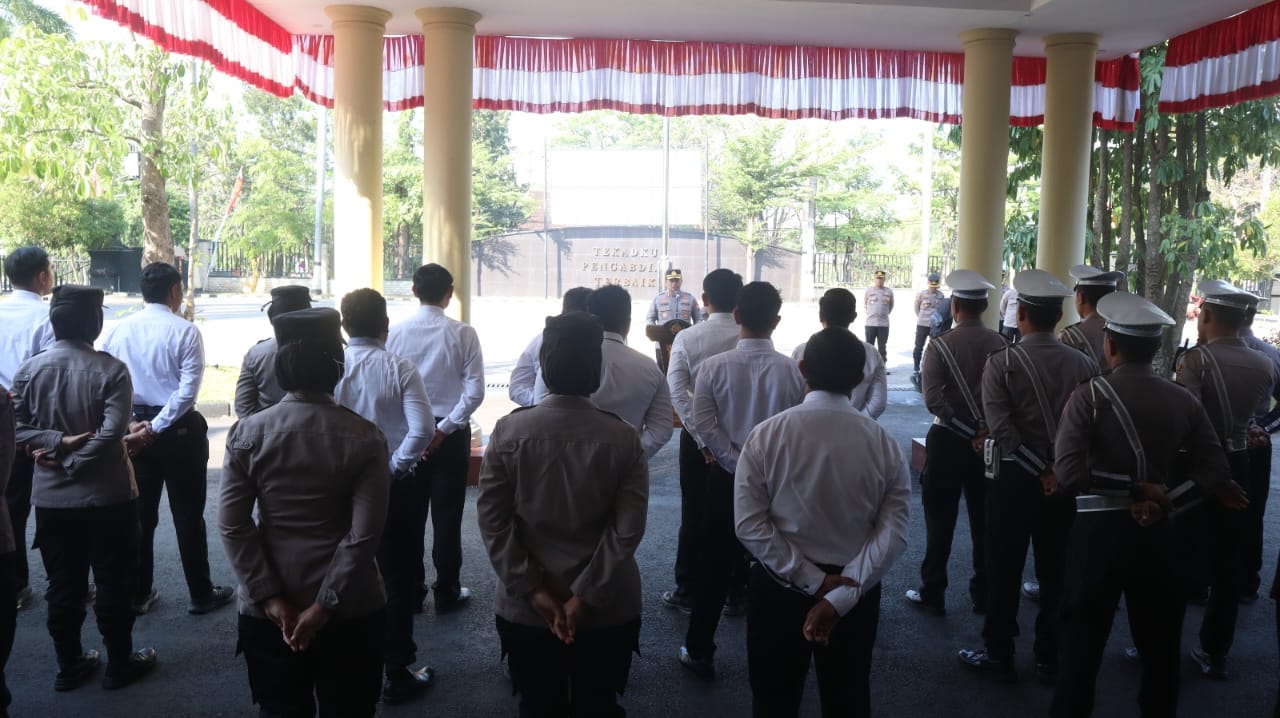 Nganjuk,potretnusantara.web.id – Kapolres Nganjuk AKBP Henri Noveri Santoso, S.H., S.I.K., M.M. memimpin apel jam pimpinan dengan menekankan kesiapsiagaan personel dalam menjaga mako, obyek vital, dan gedung-gedung yang menjadi simbol negara. Kapolres menegaskan tindakan tegas terukur akan dilakukan apabila terjadi penjarahan, perusakan, maupun penyerangan, sesuai perintah Presiden RI. Senin (1/9/2025).