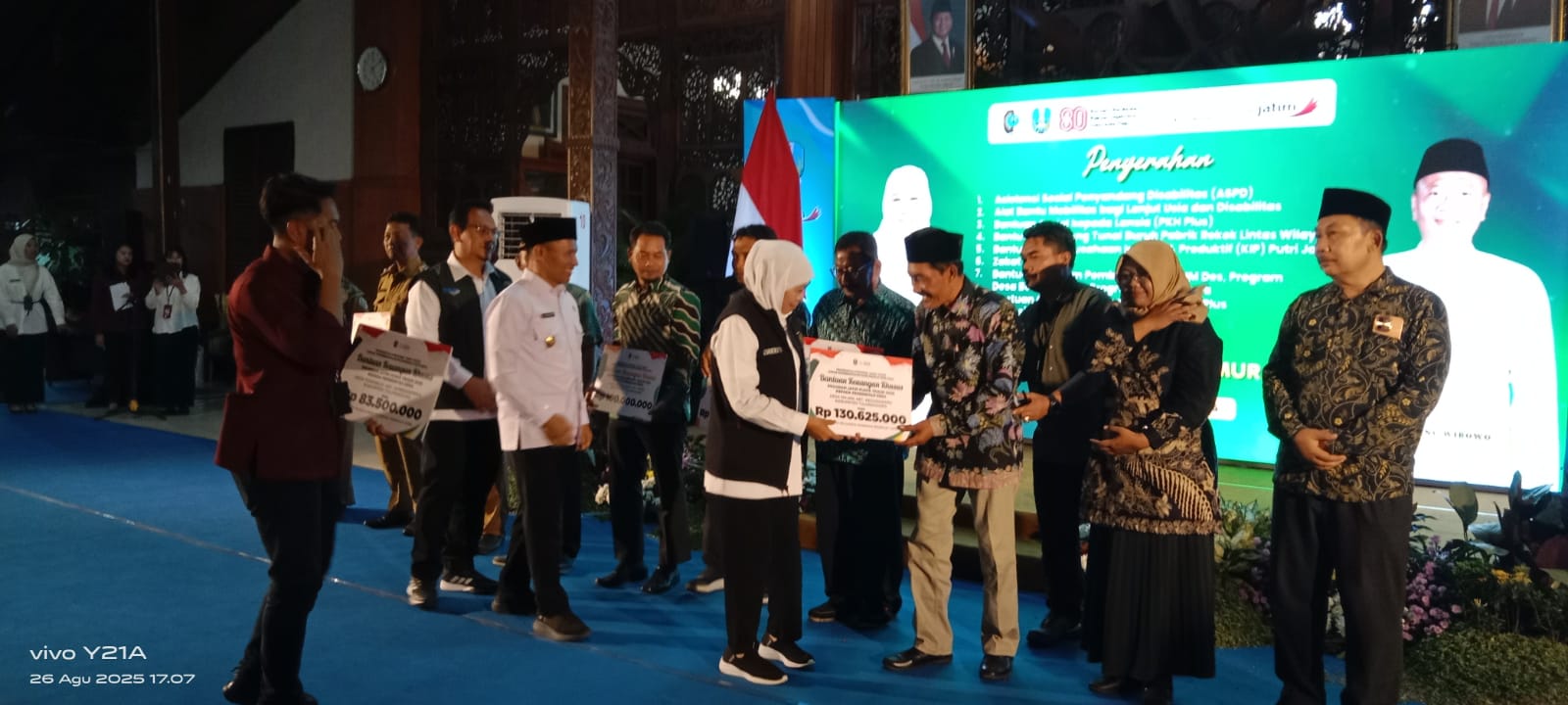 Selain aspal dan pangan, Pemprov Jatim juga menyalurkan berbagai bantuan sosial senilai lebih dari Rp6,1 miliar. Program tersebut mencakup PKH Plus, Asistensi Sosial Penyandang Disabilitas (ASPD), BLT Buruh Pabrik Rokok lintas wilayah, bantuan KIP Putri Jawara, KIP PKS Jawara, hingga dukungan bagi pilar sosial seperti TKSK, Tagana, dan pendamping disabilitas.