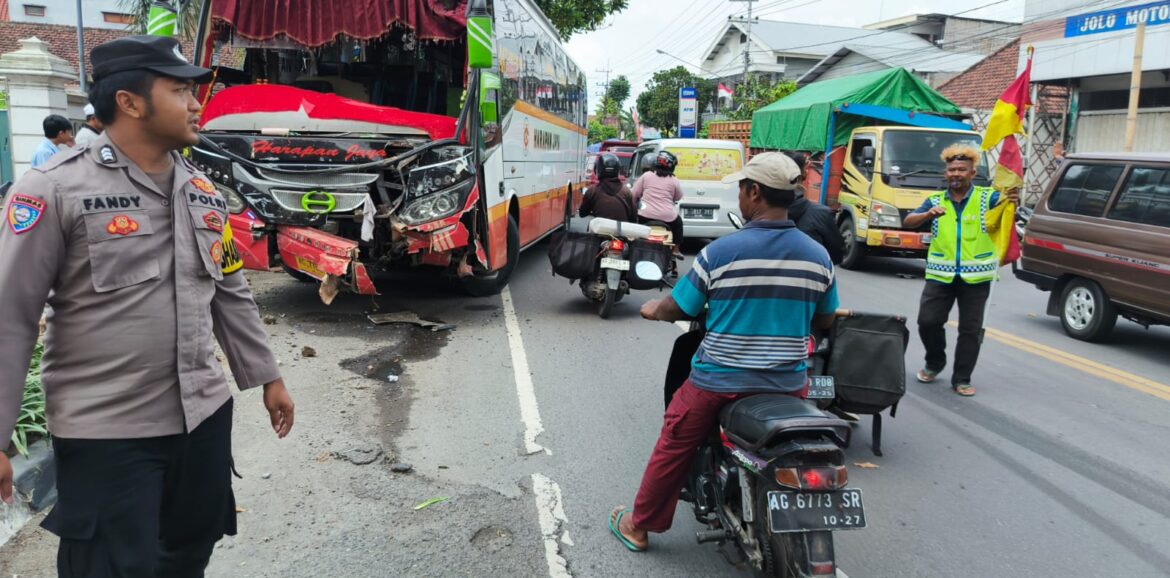 Peristiwa tersebut melibatkan satu unit Bus Harapan Jaya bernomor polisi AG 7762 US dengan dua sepeda motor, yakni Honda Supra X warna hitam Nopol AG 3984 UM dan Honda Vario 125 warna putih Nopol S 2192 QF.