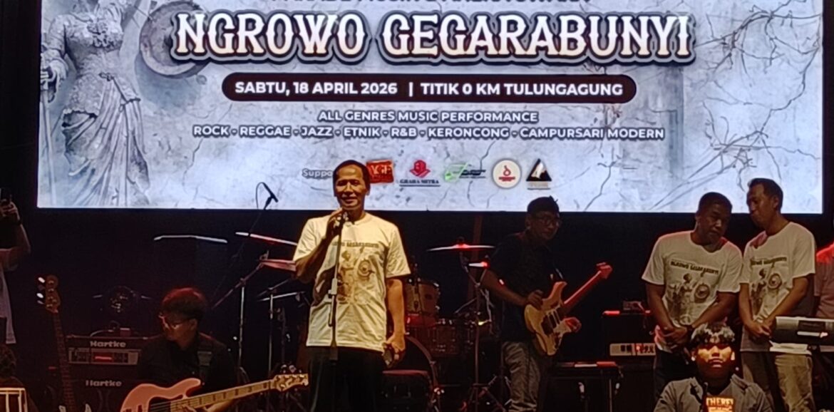 TULUNGAGUNG, potretnusantara.web.id – Pemerintah Kabupaten Tulungagung menggelar peringatan Hari Musik Nasional yang dirangkai dengan panggung apresiasi bagi seniman lokal. Kegiatan ini berlangsung meriah di Taman Nol Kilometer Tulungagung, Sabtu (18/4/2026) malam.